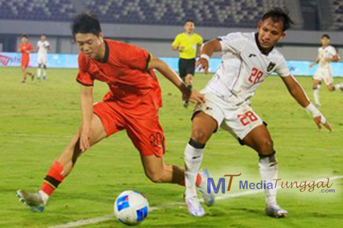 Timnas Indonesia kalah 0-7 dari China dalam pertandingan uji coba di Stadion Indomilk Arena, Tangerang, Minggu (8/2).Ini adalah uji coba pertama dari dua rangkaian, Anggota Komite Eksekut...